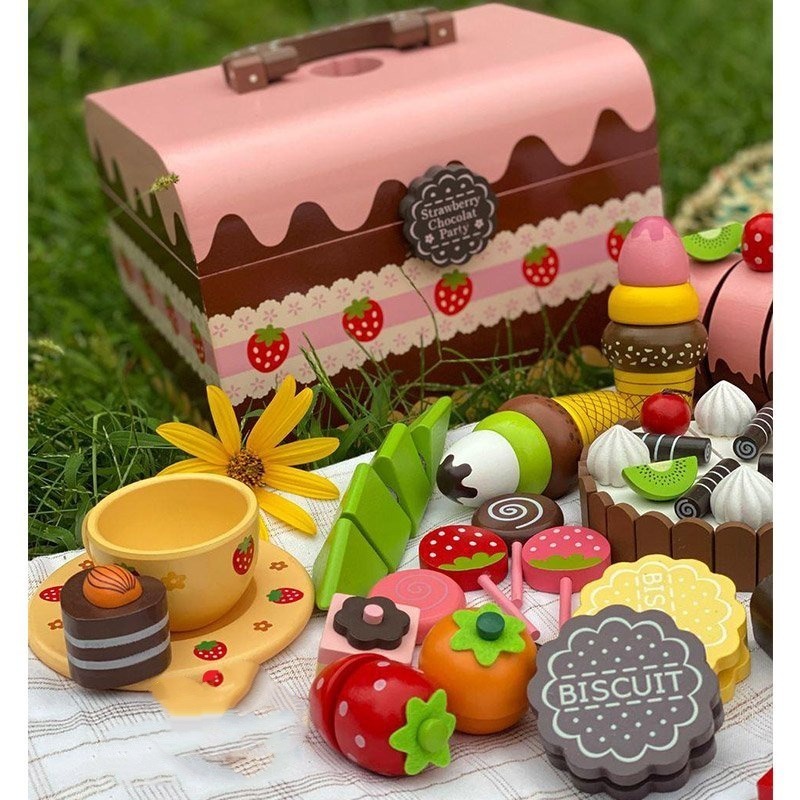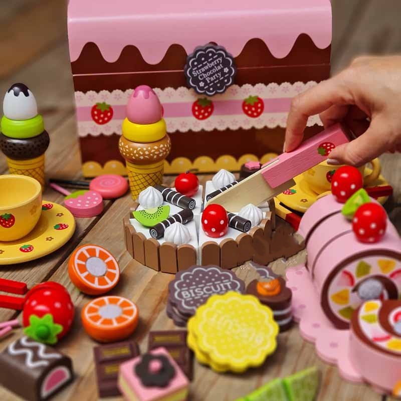 این اسباب بازی چوبی شامل قطعات مختلفی برای برگزاری یک دورهمی دوستانه است. کودکان می‌توانند با استفاده از لوازم چای خوری این ست، دوستان خود را برای یک عصرانه لذیذ دعوت کنند. این ست شامل تکه‌های متنوع چوبی از جمله پیش دستی، فنجان، کیک، شیرینی، چاقو و سایر لوازم جانبی است. همچنین، این ست دارای یک باکس چوبی جذاب برای قرار دادن تمام قطعات در آن است.