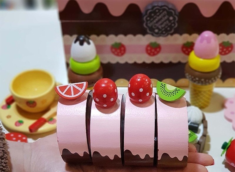 • دارای تکه های متنوع چوبی از جمله پیش دستی,فنجان,کیک،شیرینی، چاقو و سایر لوازم جانبی