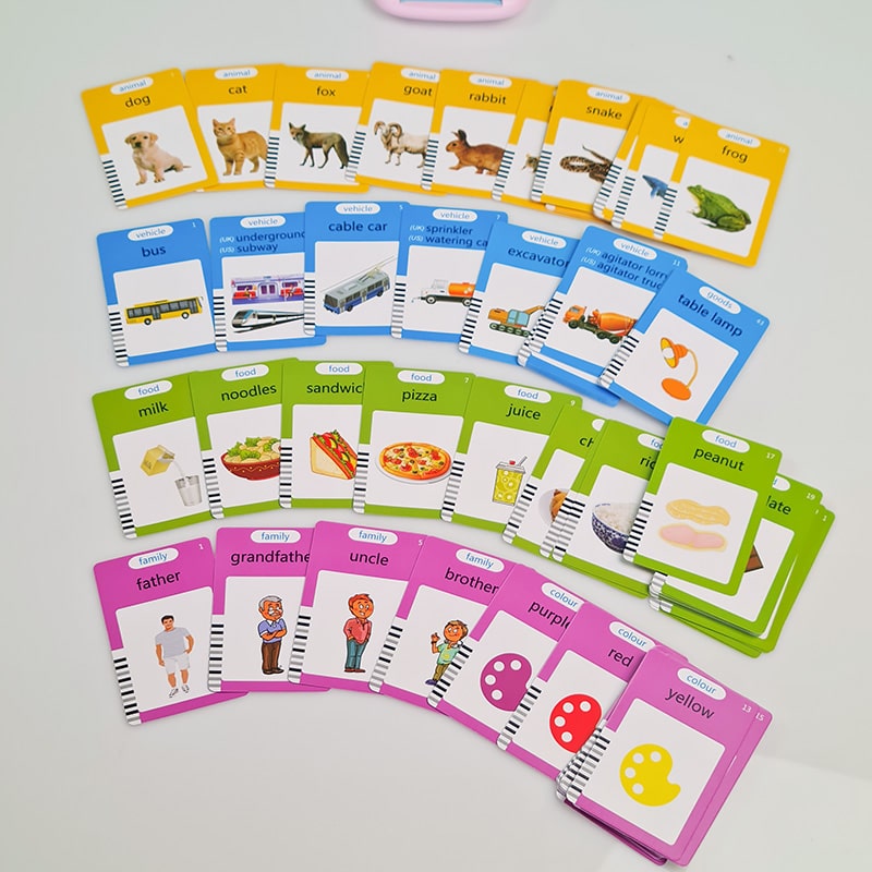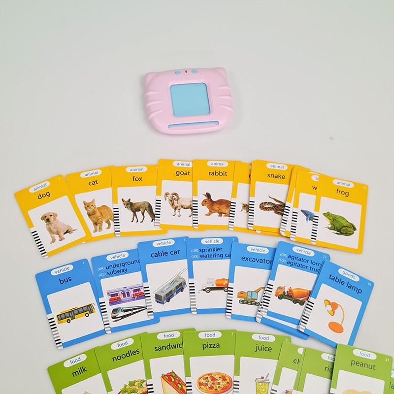 • آموزش زبان انگلیسی حین بازی: با قرار دادن کارت‌ها درون دستگاه، کلمات نوشته‌شده به صورت صوتی پخش می‌شود و کودک تلفظ صحیح آن را یاد می‌گیرد.