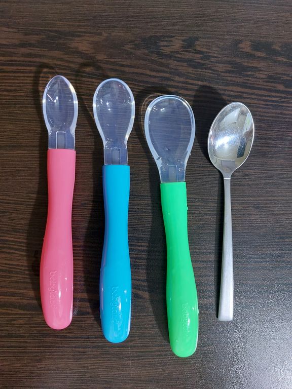 ست قاشق غذاخوری کودک – دارای ۳ عدد قاشق با سایزهای S ، M ، L در یک بسته – دارای بدنه پلاستیک – دارای سری سیلیکونی – طراحی ارگونومیک بدنه، جهت دست گرفتن راحتتر – فاقد BPA